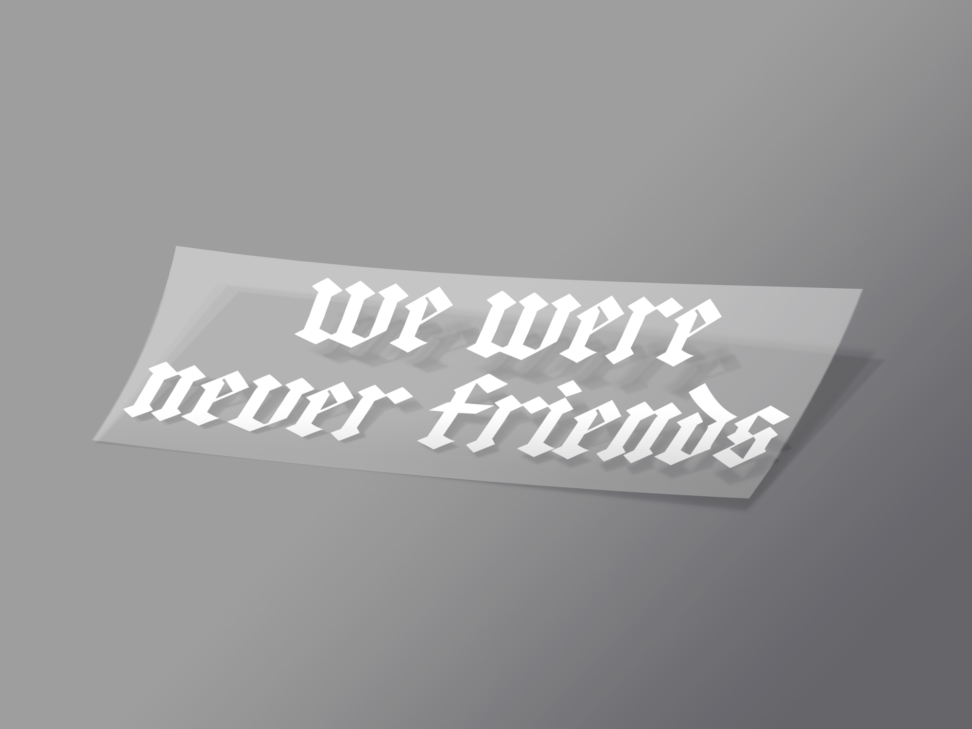 We Were Never Friends. Designed and made in house.